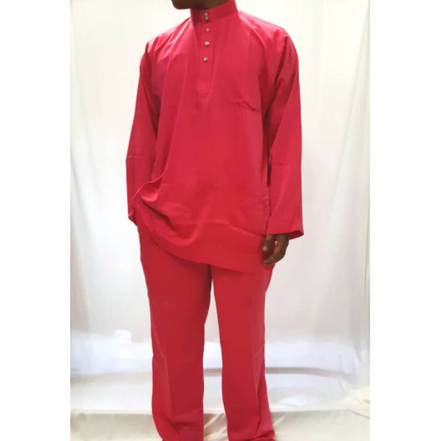 Baju Melayu Sepasang Warna Magenta Pink Belacan Baju Seluar Set Free Butang Baju Shopee Singapore