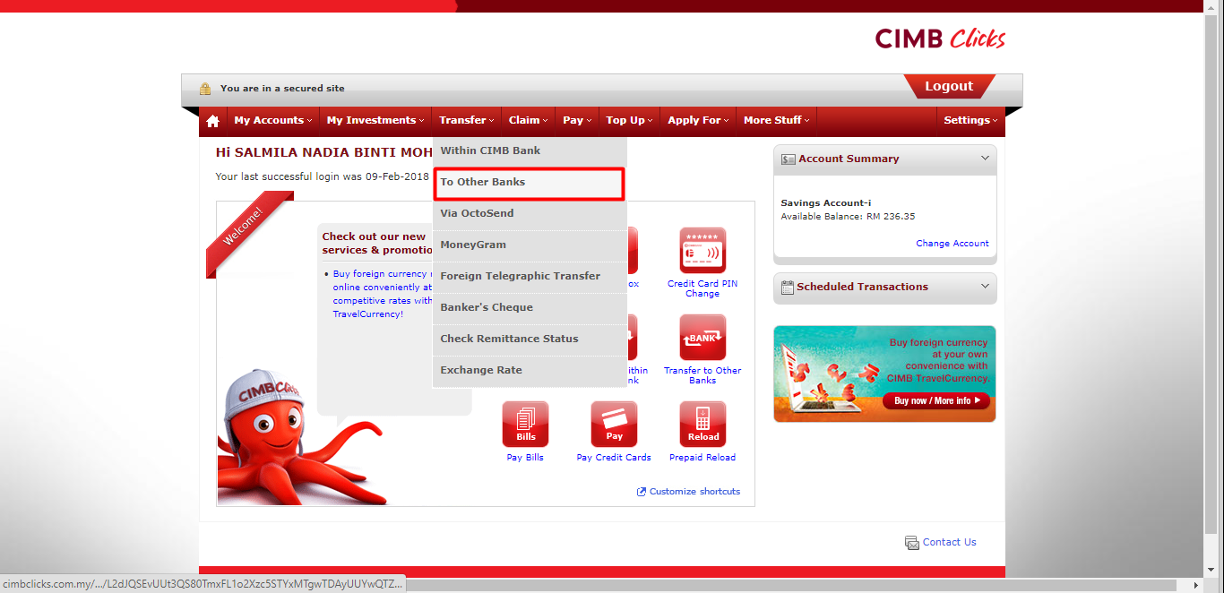 Blog Cik Miela Cara Transfer Duit Dari Cimb Ke Bank Lain Mengunakan Cimb Cliks