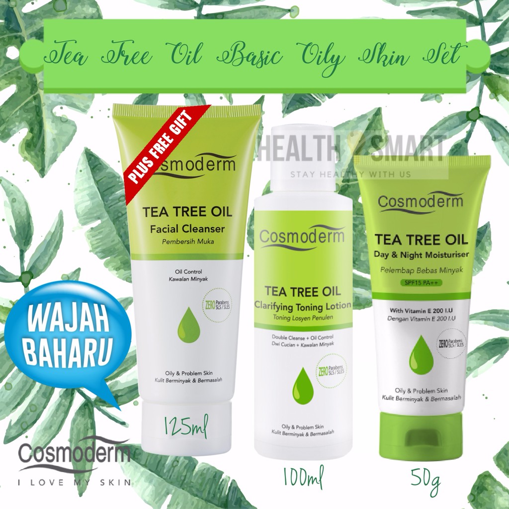 Cosmoderm Tea Tree Oil Anti Acne Skin Set Cleanser Toner Moisturiser Shopee Singapore